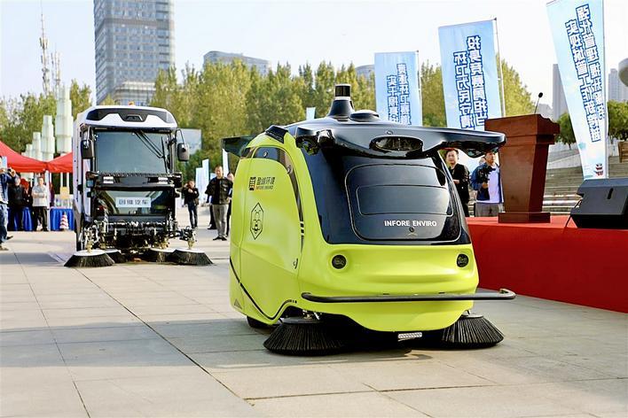 在展示现场,小蜜蜂和大海牛这两款无人驾驶环卫机器人来了,它们自动完成保洁作业的效率和全天候工作的状态,让人耳目一新。