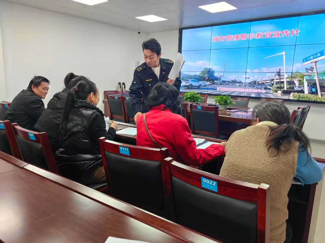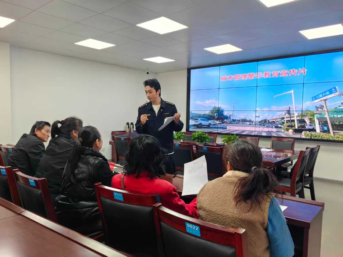 在活动现场,十余名因占道经营被纳入教育范围的摊主围坐。与以往不同的是,这里没有罚单和扣押物品,取而代之的是生动的案例视频和耐心的政策解读。“我们特意选取了首次轻微违规的商户,通过‘请进来’的方式开展面对面交流。”纸坊街道综合执法中心负责人介绍。