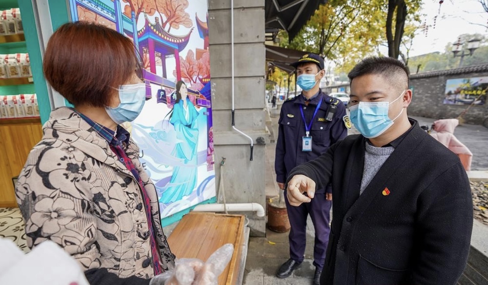 桂杰正在巡查户部巷环境卫生